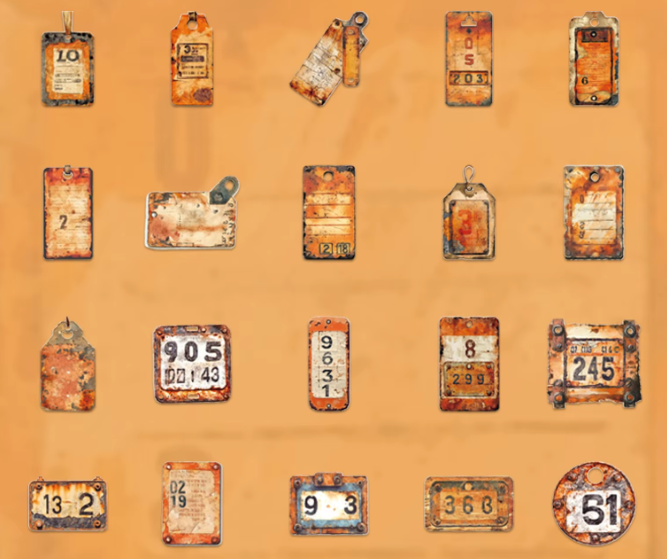 45 Old metal code stickers